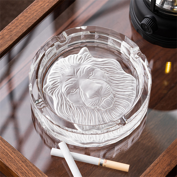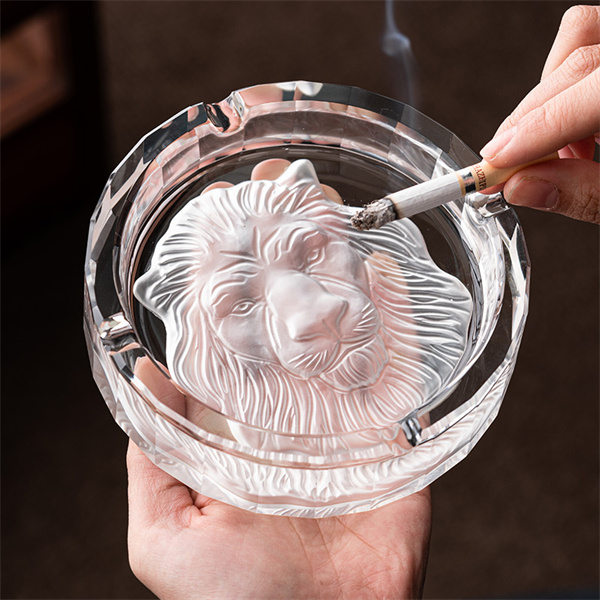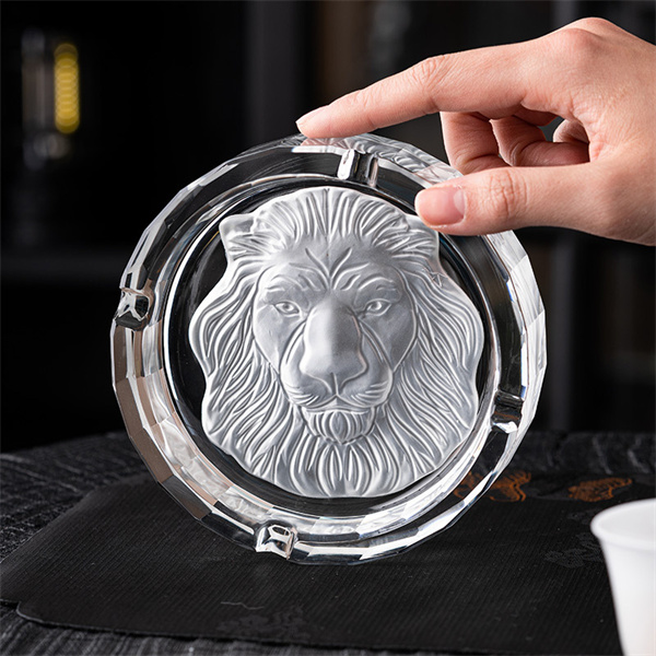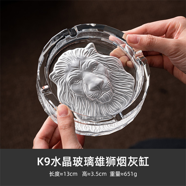 Ця прекрасна і елегантна попільниця виготовлена з марки кришталевого скла K9. Він настільки ж кришталево чистий, як кольорове скло, просте і чітке, елегантне і красиве. Він розроблений з елементами левів. Він ручний і має сильну текстуру. Він вводить новий пейзаж у життя з простою естетикою. Будь то вдома чи в офісі, він виглядає повним стилю.