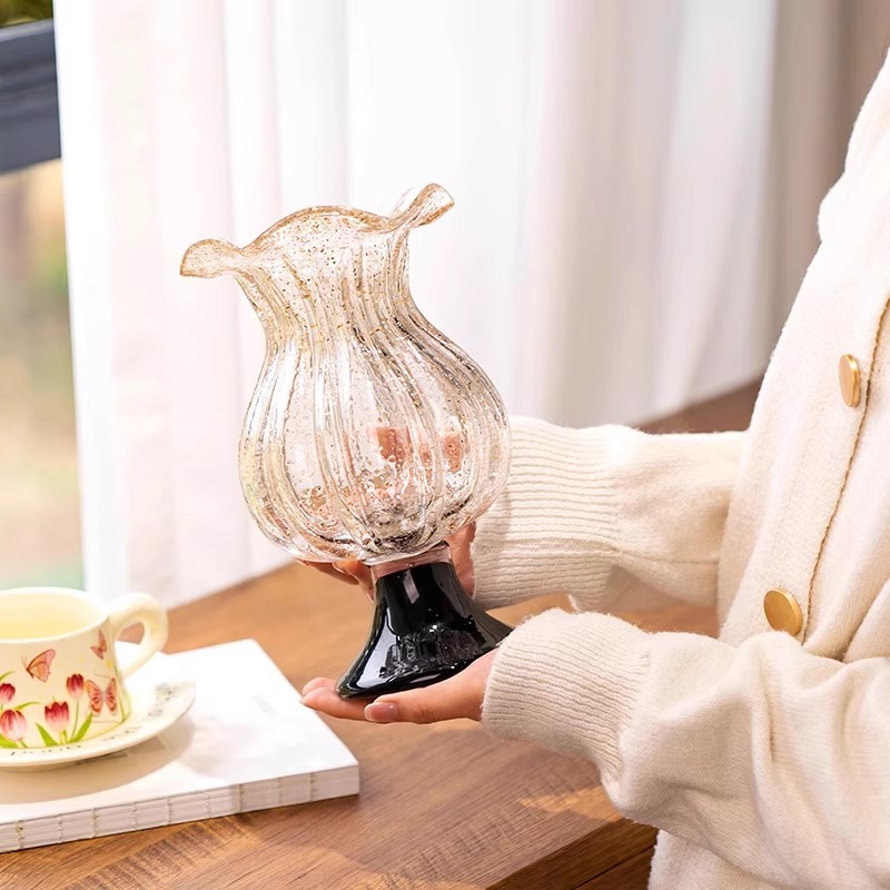 Назва виробу: розкішна вінтажна висока скляна ваза з позолотою