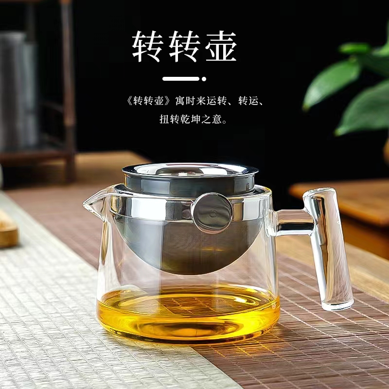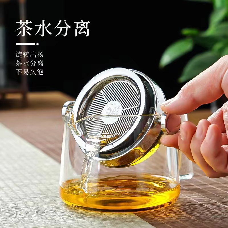 2. Дизайн поворотного горщика дуже витончений, а зовнішній вигляд модний і красивий. Він застосовує конструкцію розділення чаю та води та може обертатися, щоб дозувати суп, щоб уникнути тривалого замочування чаю. Це також красиво і практично. Це не тільки зберігає свіжість чайного супу, але й полегшує контроль часу заварювання та запобігає перекипінню.